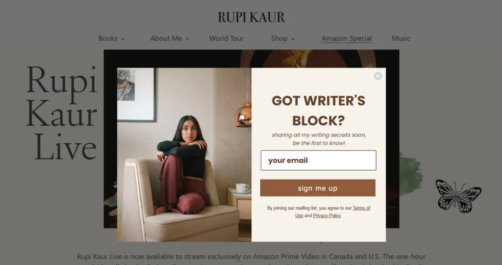 Rupi Kaur, a Canadian author, excels at writing effective sign-up forms.